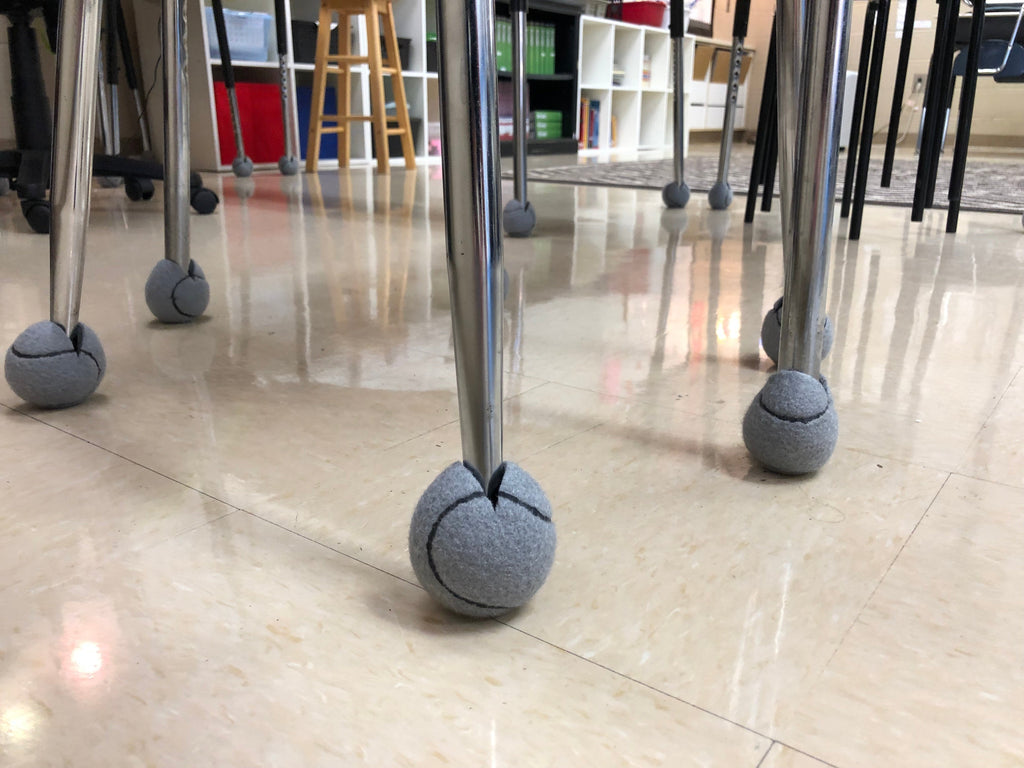 Our Pre-Cut Tennis Balls fit nice and snug on up to 1 3/4″ diameter tubing for a universal fit on school & home furniture.