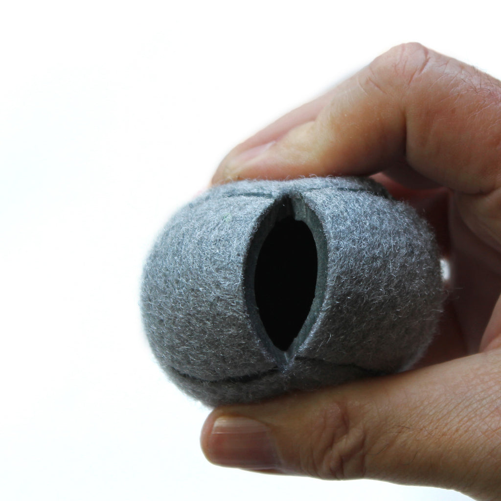 Our Medium Grey Precut Tennis Balls are the size of a racquetball and slightly smaller than a standard size tennis ball for a snug fit on classroom furniture, bar stools, patio furniture, etc. Each custom tennis ball is made with a heavy-duty wear resistant felt and a 3.5 mm thick rubber core. All Medium Precut Tennis Balls are guaranteed to last a minimum of 3 years under normal conditions.